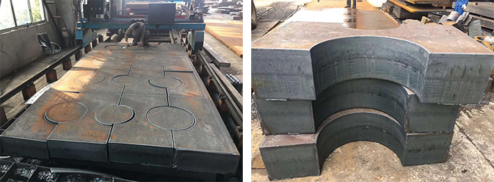 万卓现货资源:10mm/20mm/30mm/40mm/50mm/60mm/70mm/80mm/90mm/ 100mm/110mm/120mm/130mm/140mm/150mm/160mm/170mm/180mm/190mm /200mm/210mm/220mm/230mm/240mm/250mm/260mm270mm/ 280mm/290mm/300mm/310mm/320mm/330mm/340mm/350mm/360mm370mm /380mm390mm/400mm/500mm/550mm/600mm/700mm 【钢板宽度4.8米.长可达26米.单重可达46吨】 以质量求生存 以信誉求发展 江苏无锡万卓钢铁有限公司 加工材质:Q235B/A3/Q345B/Q345D/Q360B/E.Q390B/E.Q460B/E.Q590B/E.Q690B/E. 45#/S45C/16MN/16锰/Q245R/Q345R/s355jr.s355jr+n等特殊材料。 钢板切割: 承接机械配套机加工,主营Q235B、Q345B、45#钢等材质的钢板切割与加工。可按客户图纸要求进行钢板切割异型件、切割法兰圆盘毛坯件、仿形件。钢板外协加工各类机械零部件、模具钢、轴承座、齿轮盘、钢结构及焊接预埋件、起重及升降钢板配重块。钢板切割件产品主要应用于重型机械设备,如造船、纺织、采矿机械、机床、锻压、发电设备、冶金机械制造等领域。的优势在于特厚钢板的切割及深加工业务中能大量替代锻、铸件。有效的减少了在制造大型机械设备配件、齿轮箱、轧机牌坊,轴承座方面的加工量,同时为广大厂家减少钢板加工零部件的工序和加工成本。